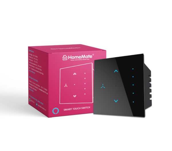 The smart fan regulator touch switch comes with many features and one of them can be controlled from anywhere, anytime using the HomeMate Smart app on your smartphone.